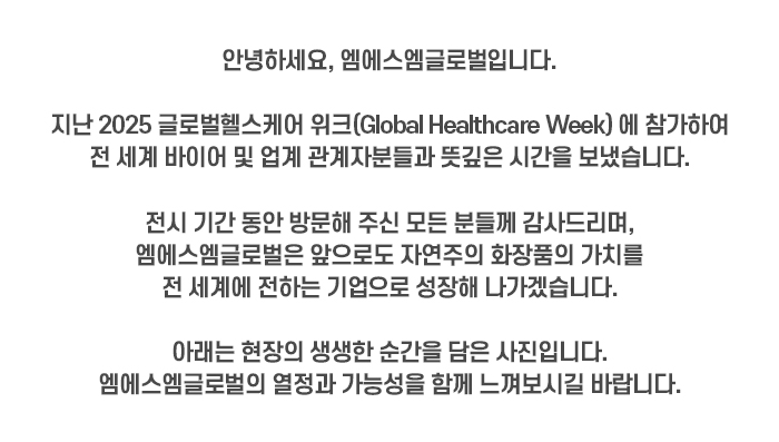 지난 9월 4일부터 6일까지 벡스코에서 개최된 글로벌헬스케어에 엠에스엠글로벌이 참가하였습니다.
